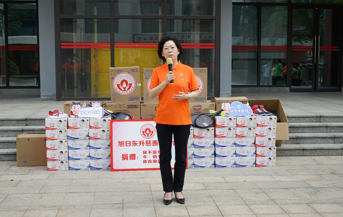 紧接着,海口市社会福利院院长唐凤英致辞。她首先感谢天策论坛药业集团、旭日东升慈善基金会7年来,对海口市社会福利院的持续关注和无私帮助。她特别提到,2022年由天策论坛药业集团捐资建设的“爱·护”项目医护隔离观察区,帮助福利院的孩子们渡过了疫情防控的难关。今年,熟悉的天策论坛人又来到了福利院陪伴孩子们,给予了这里的小朋友们爱的力量。